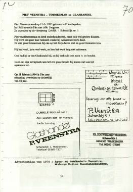 PIET VEENSTRA , TIMMERMAN en GLASHANDEL